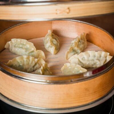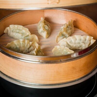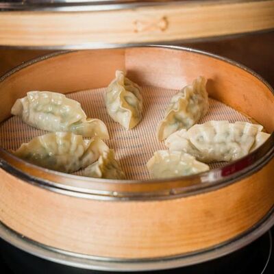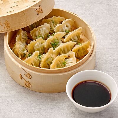 Дамплинги, приготовленные на пару, с соево-кунжутным соусом (15 шт.)