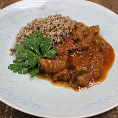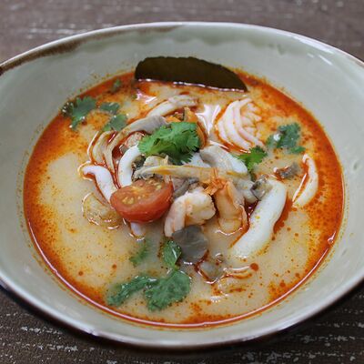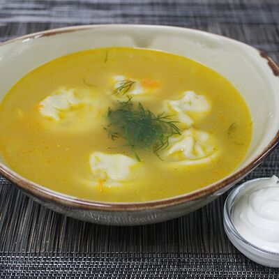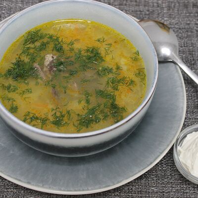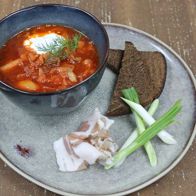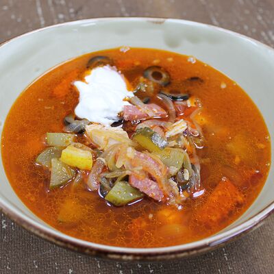 Наваристые щи из квашеной капусты на говяжьем бульоне, подаются со сметаной