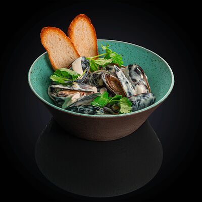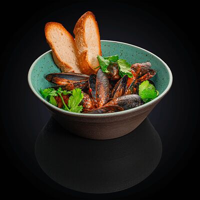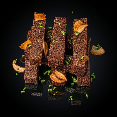 Хлеб бородинский, чеснок, соль морская, соус спайси