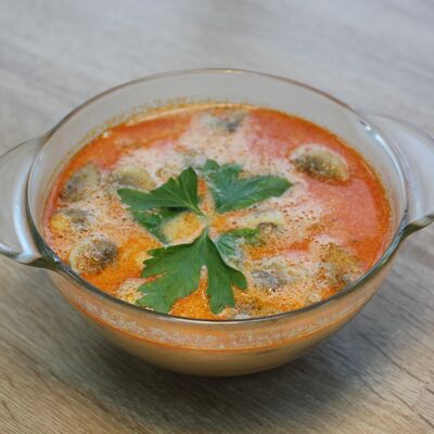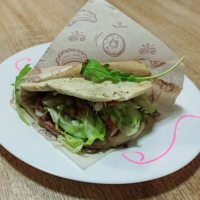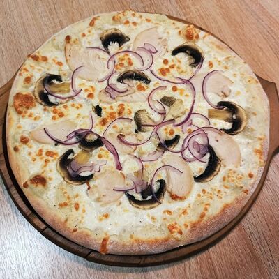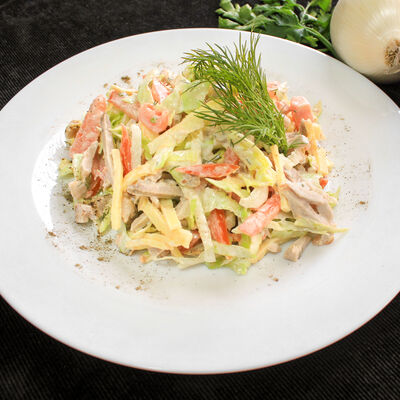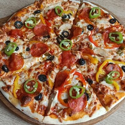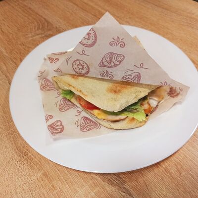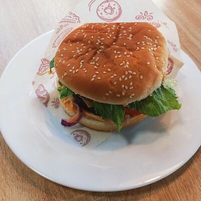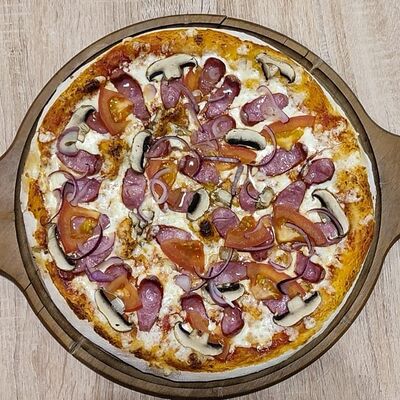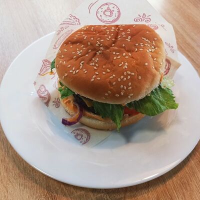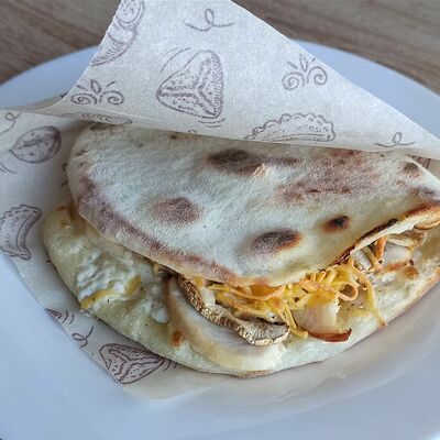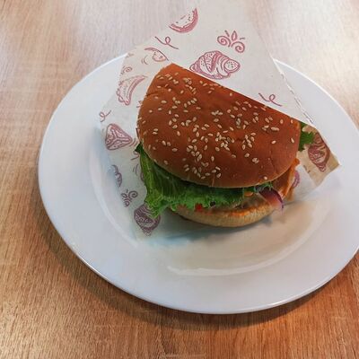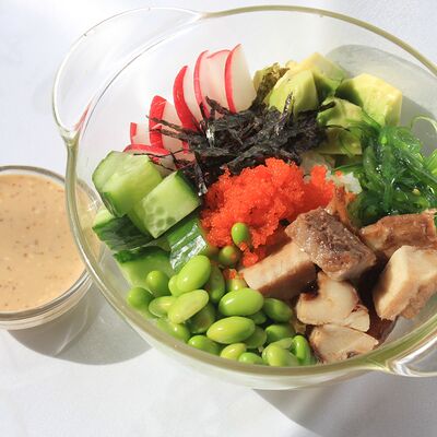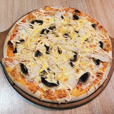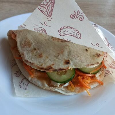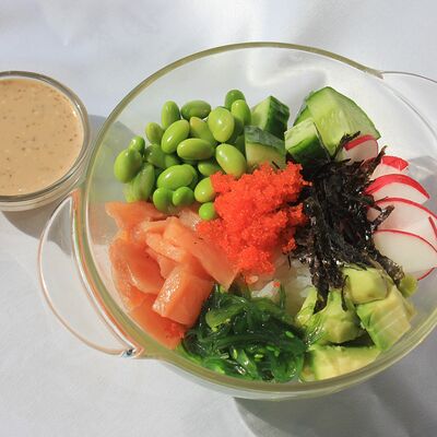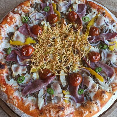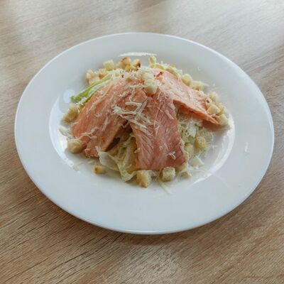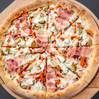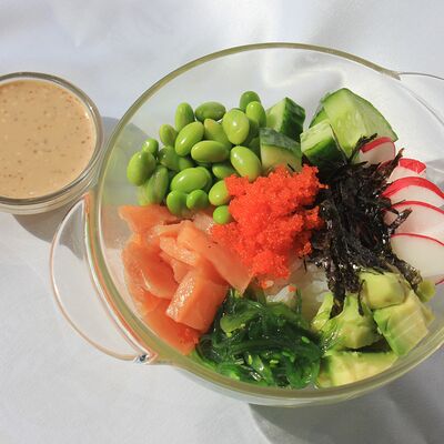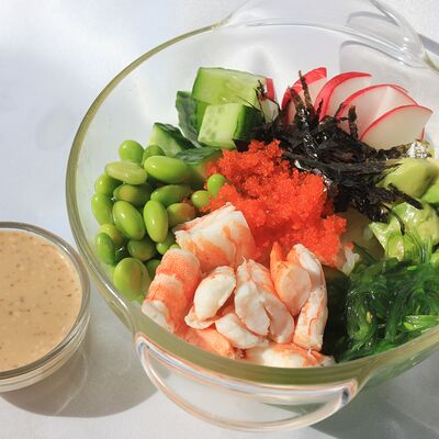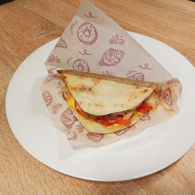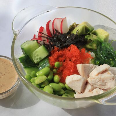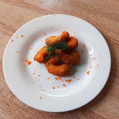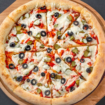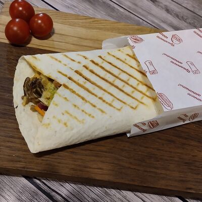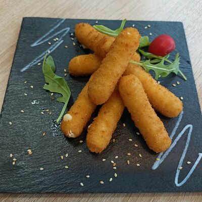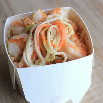 Рис, нори, огурец, авокадо, креветка тигровая, спайси соус, сыр пармезан