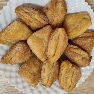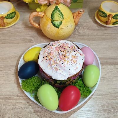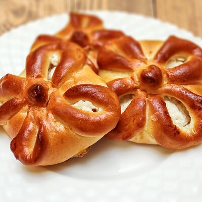 Мука, разрыхлитель, яйца, маргарин, творог, ванилин, сахар, сахарная пудра, посыпка