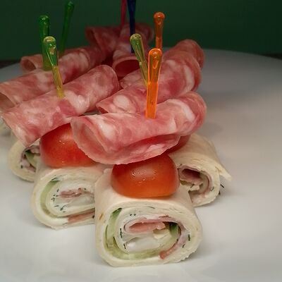 Лаваш, сливочный сыр, укроп, чеснок, китайская капуста, огурец, яйцо, томат, сальчичон (14 шт.)