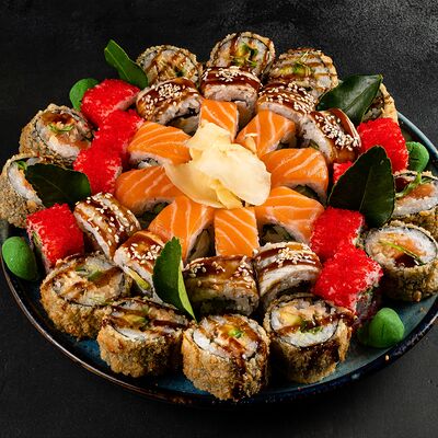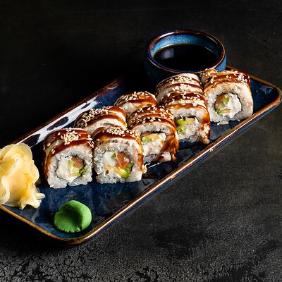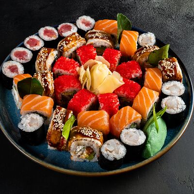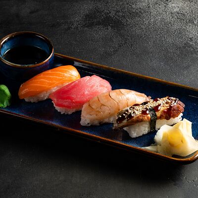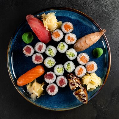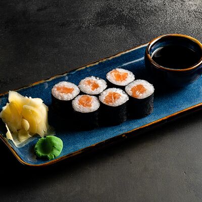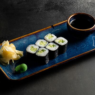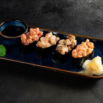Креветка, рис, нори, имбирь, васаби, соевый соус