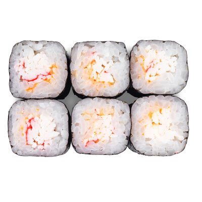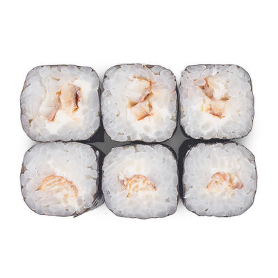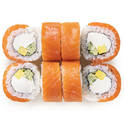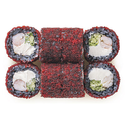 Рис, лосось, креветка в темпуре, нори, сыр сливочный, соус, огурцы (8 шт.)