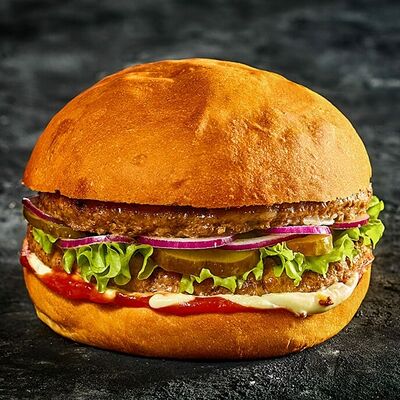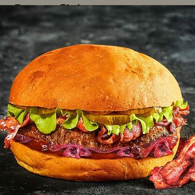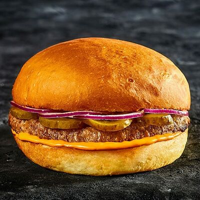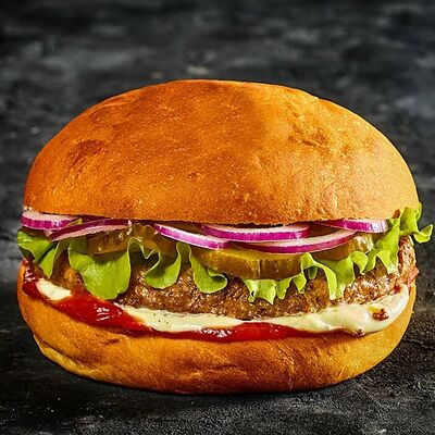 Котлета из говядины мармеладный лук помидоры свежие сыр плавленный лист салата соус барбекью соус сливочнный пармеджано соус чесночный ранч