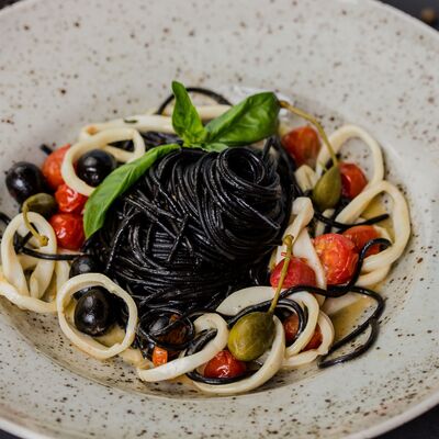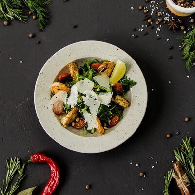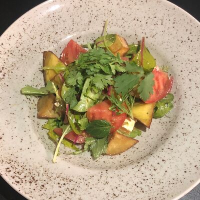 Томаты, огурцы, перец болгарский, сыр фета, красный лук, маслины, оливки, оливковое масло