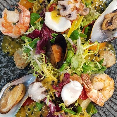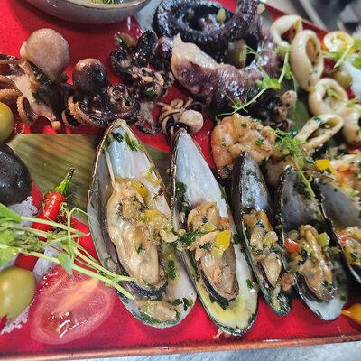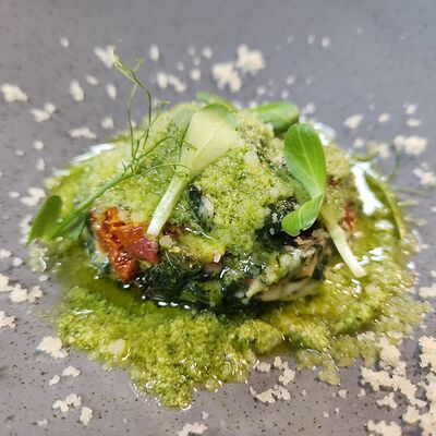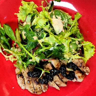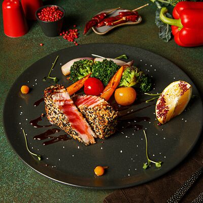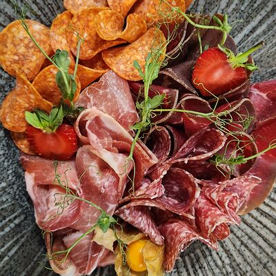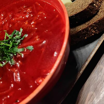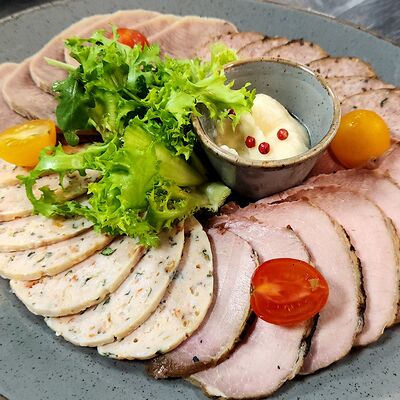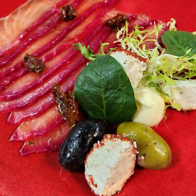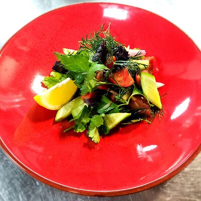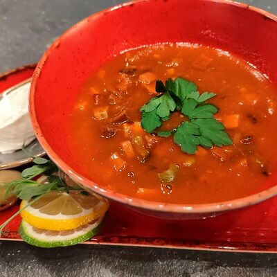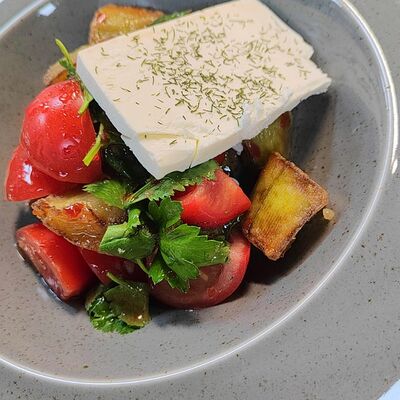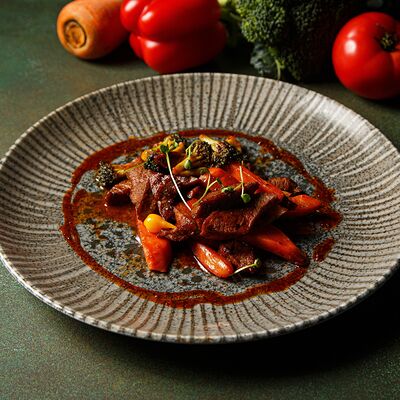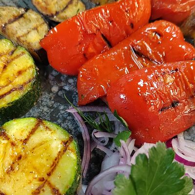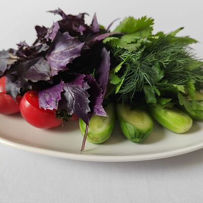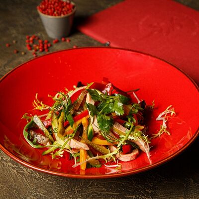 Болгарский перец, свежий огурец, ростбиф, соленые огурчики и оливковое масло