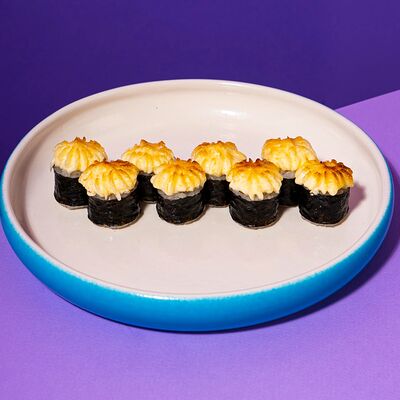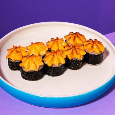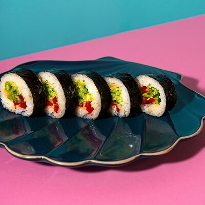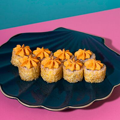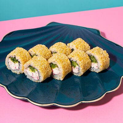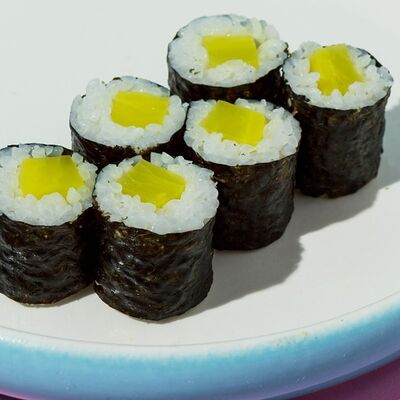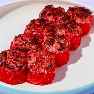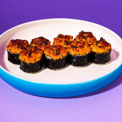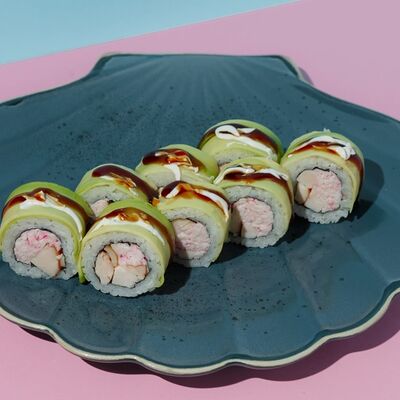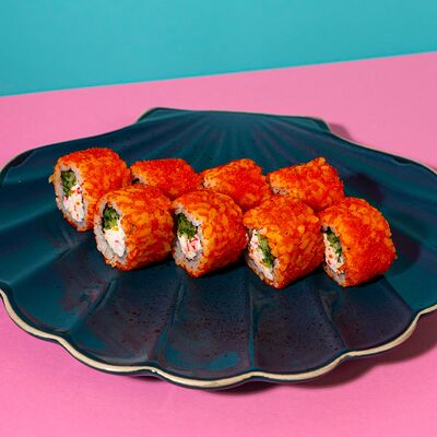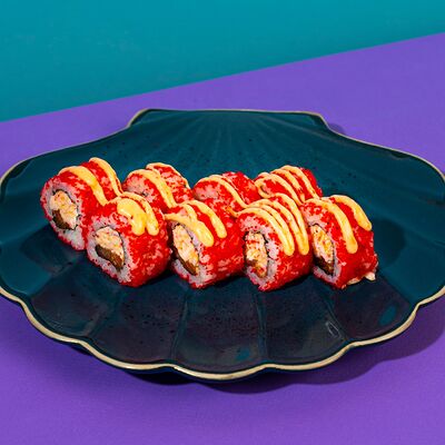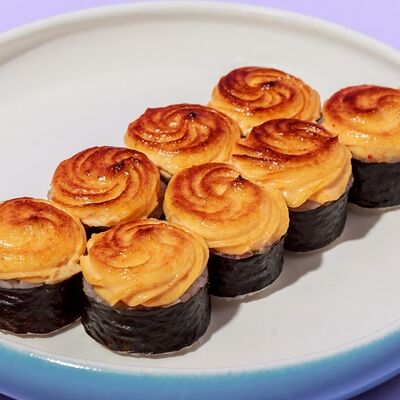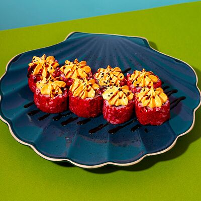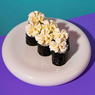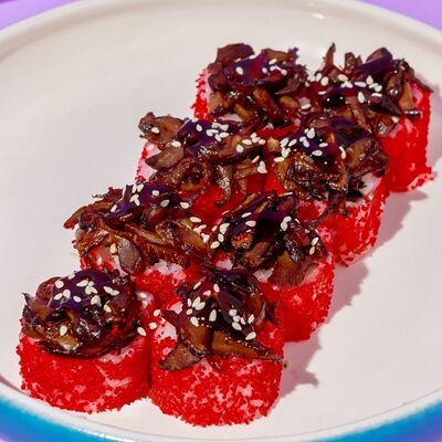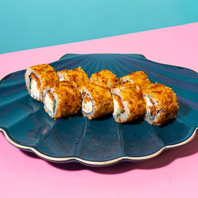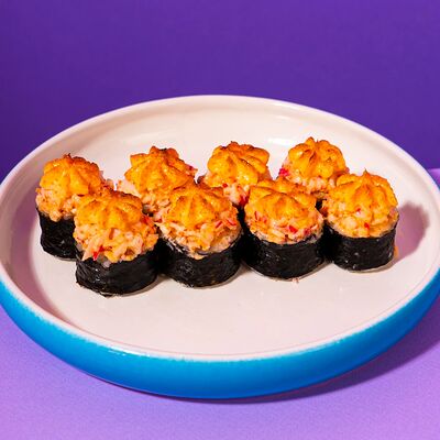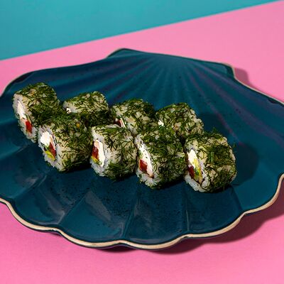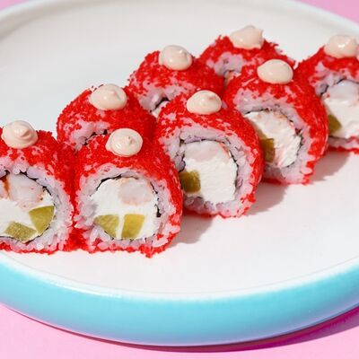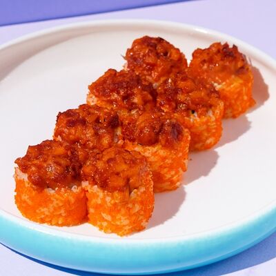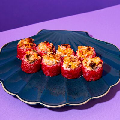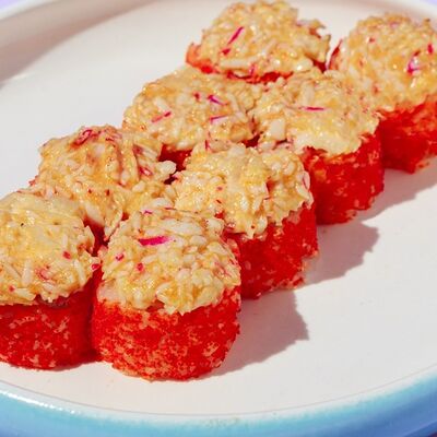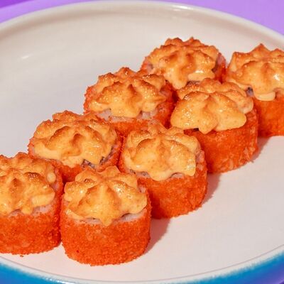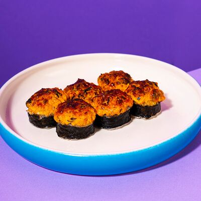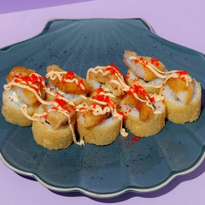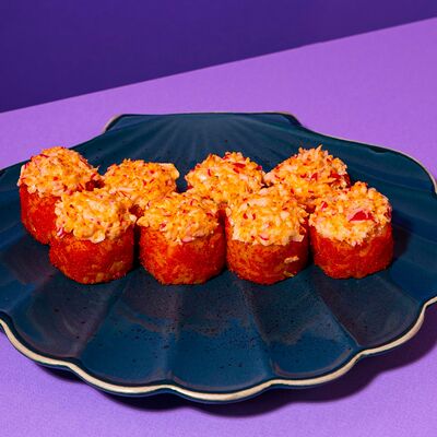 Куриное филе, капуста кимчи, морковь, огурец, редька такуан, ореховый соус. Корейский ролл кимпаб, который завоевал сердца гурманов со всего мира. Ощутите сочность курочки, остроту капусты кимчи, свежесть моркови и огурца, хруст редьки такуан и аромат орехового соуса