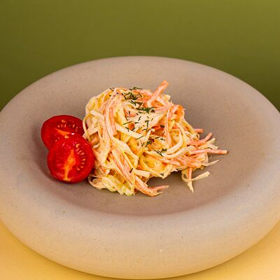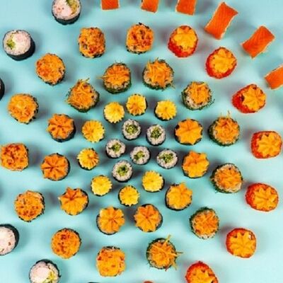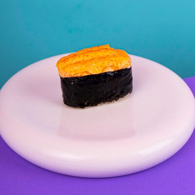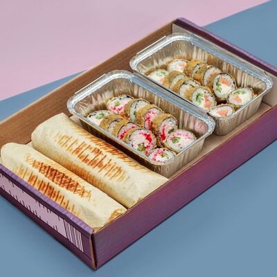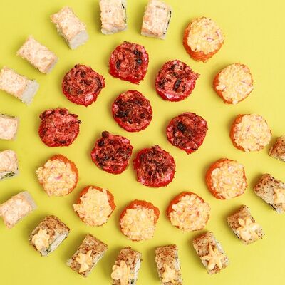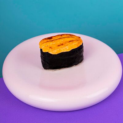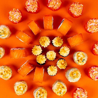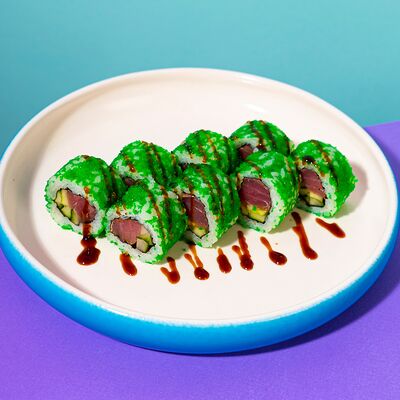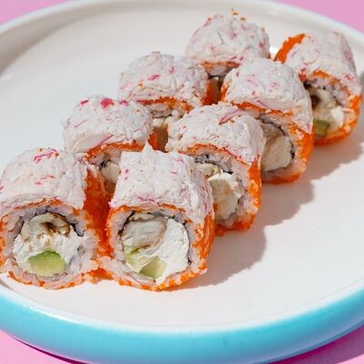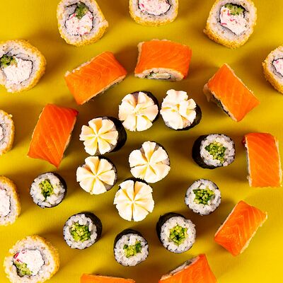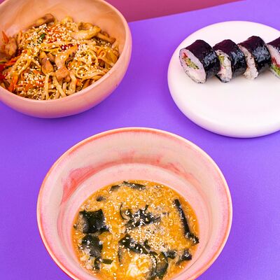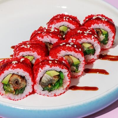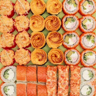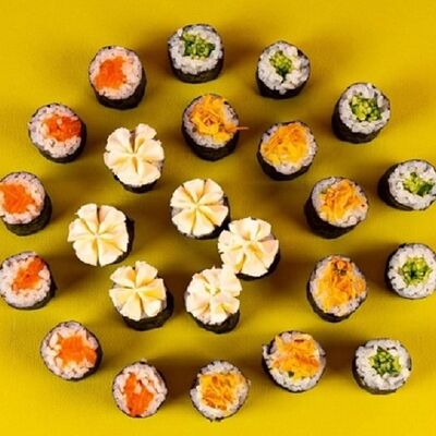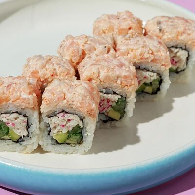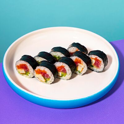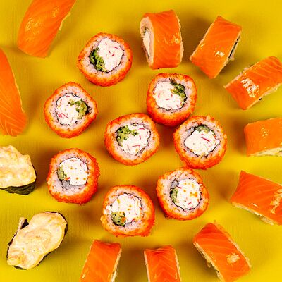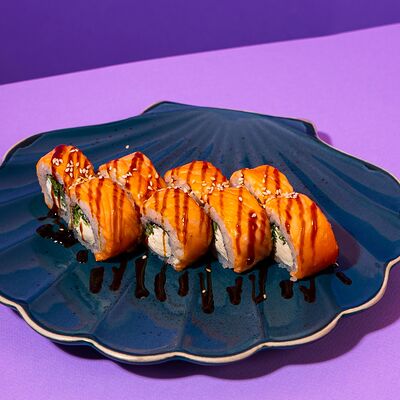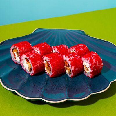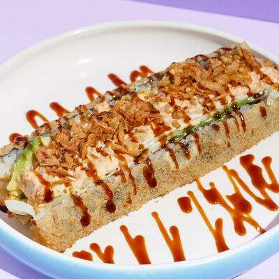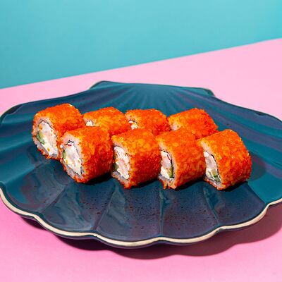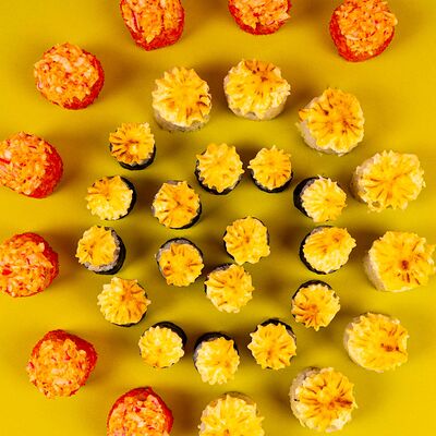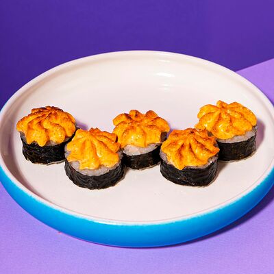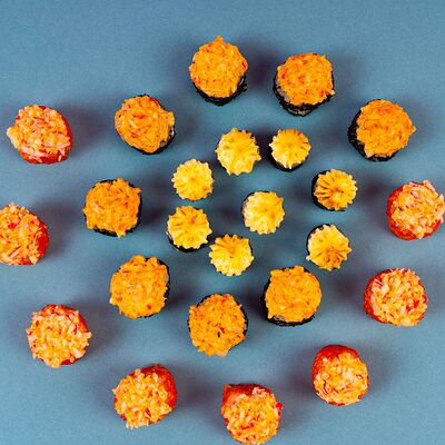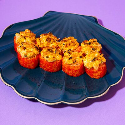 Куриное филе, капуста кимчи, морковь, огурец, редька такуан, ореховый соус. Корейский ролл кимпаб, который завоевал сердца гурманов со всего мира. Ощутите сочность курочки, остроту капусты кимчи, свежесть моркови и огурца, хруст редьки такуан и аромат орехового соуса