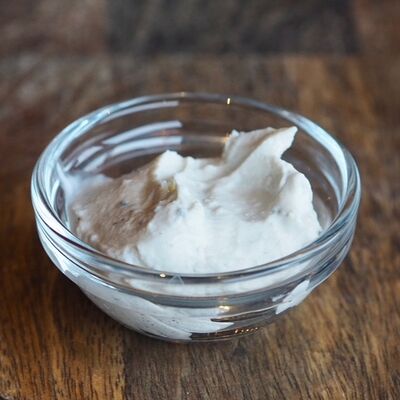 Сыр фета, сметана, сельдерей, мята, оливковое масло, чеснок, перец