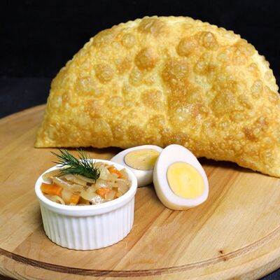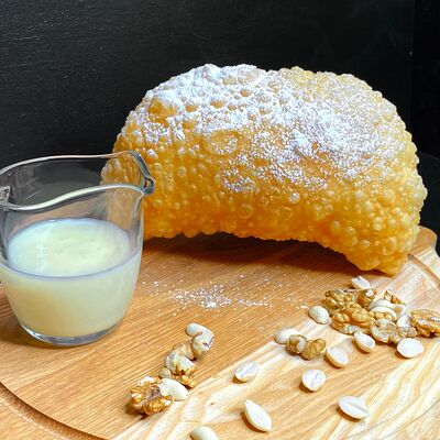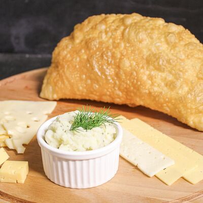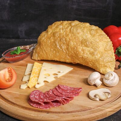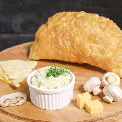 Фирменное тесто, картофельное пюре, сыр, шампиньоны