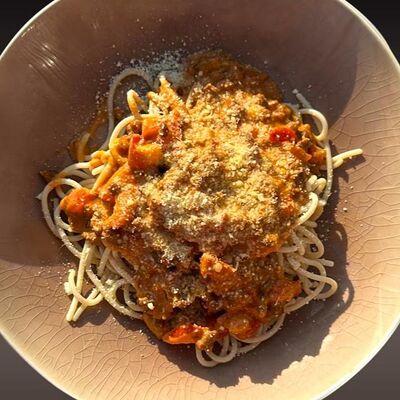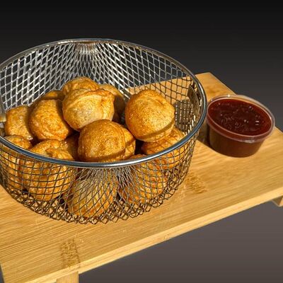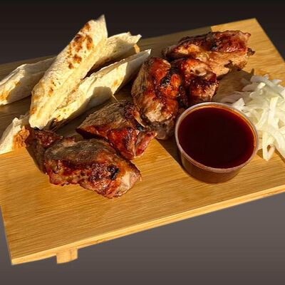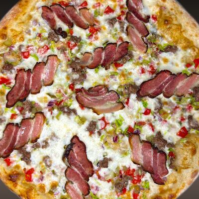 Соус ранч, сыр моцарелла, цыпленок гриль, красный лук, свежие томаты, бекон, чеснок, зелень, маринованный огурец, сыр пармезан