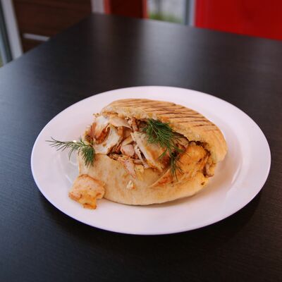 Куриной мясо, лаваш, овощной салат, соус