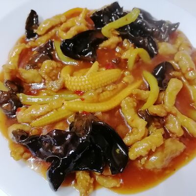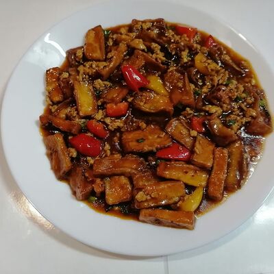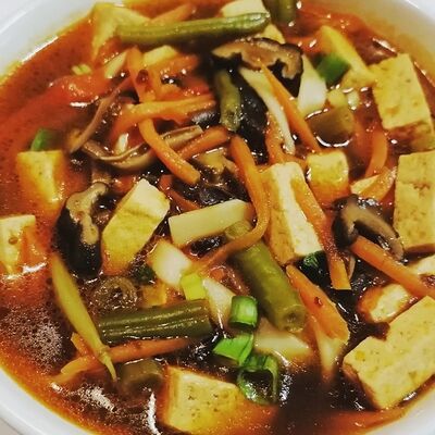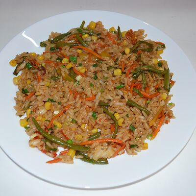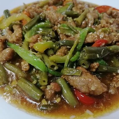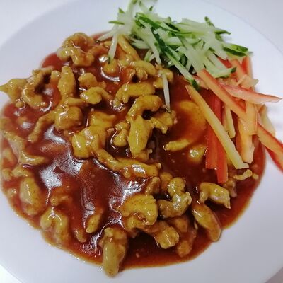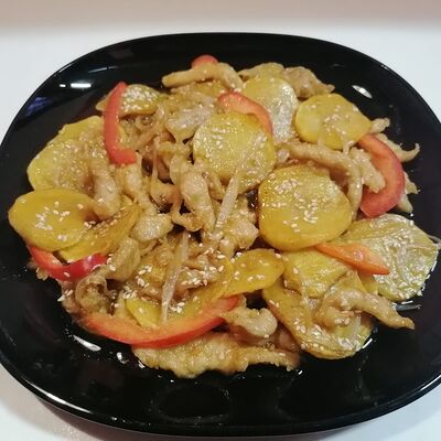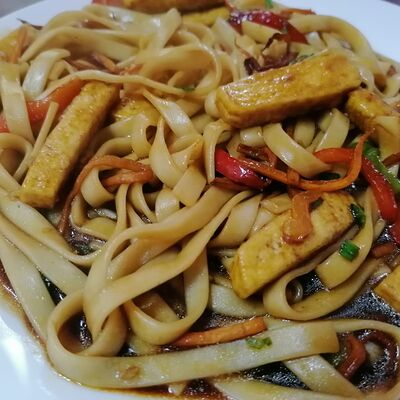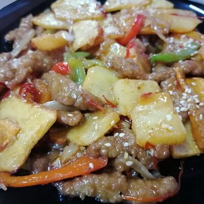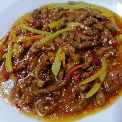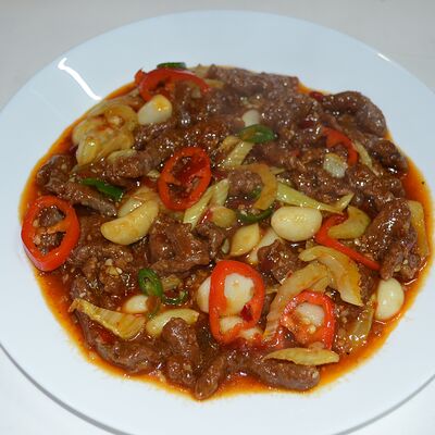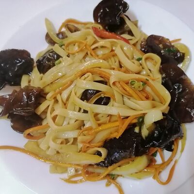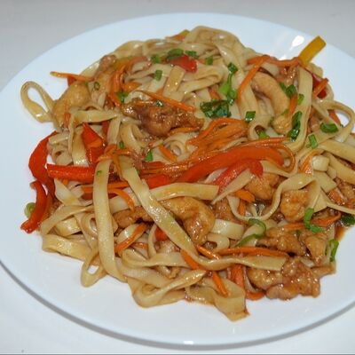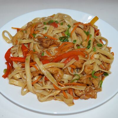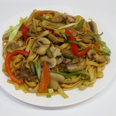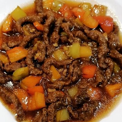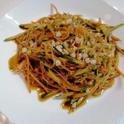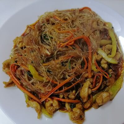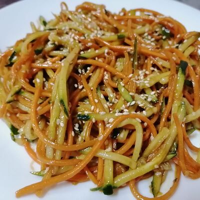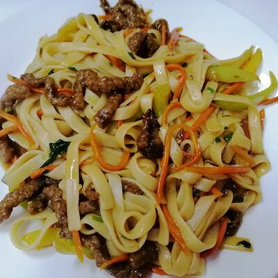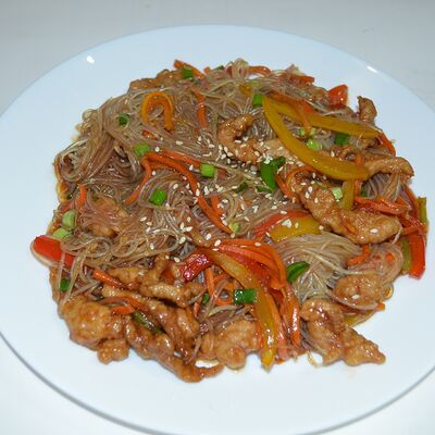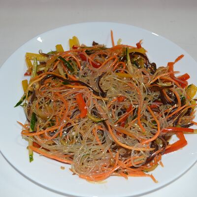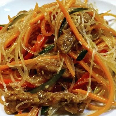 Обжаренная говядина с корейской морковью, фунчозой и овощами доставка