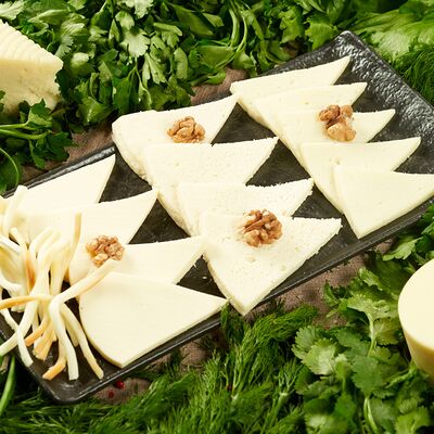 Тесто, сыр сулугуни, специи. Классический вариант с сыром внутри