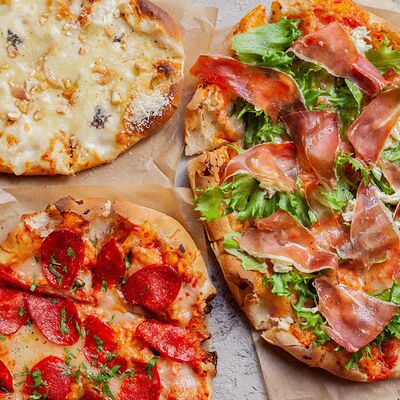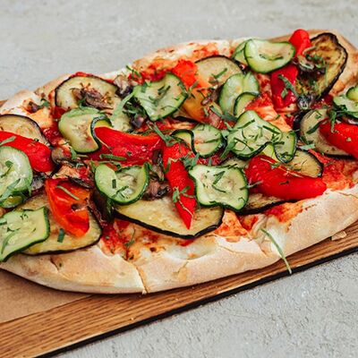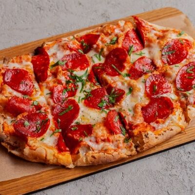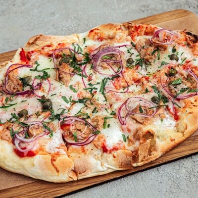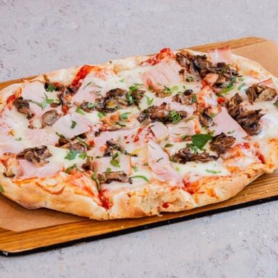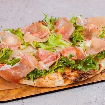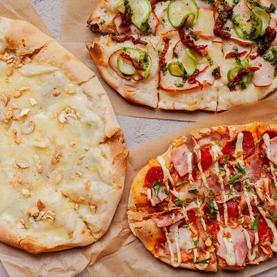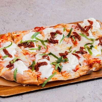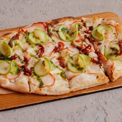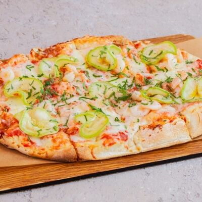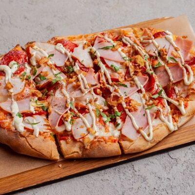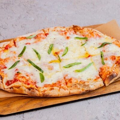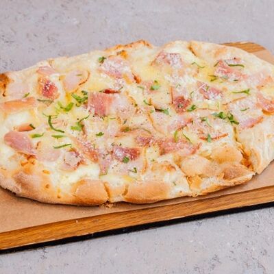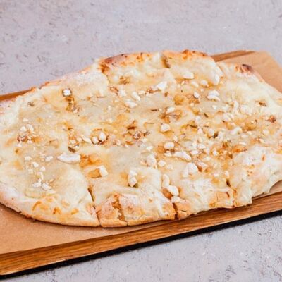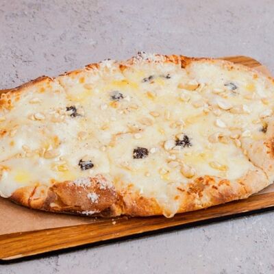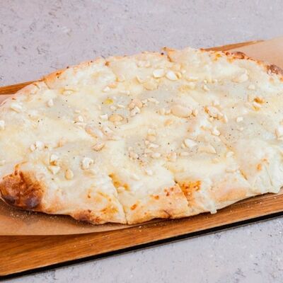 Хрустящее тесто, сыр моцарелла, соус бешамель, паста трюфельная, масло трюфельное, пармезан, кешью, черный перец, сливки, сыр моцарелла рассольная (30x22 см)