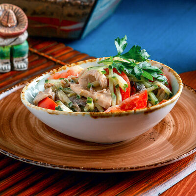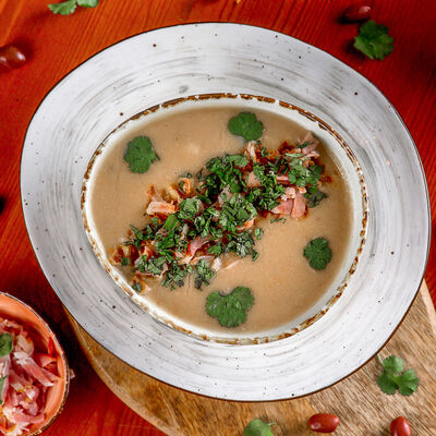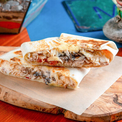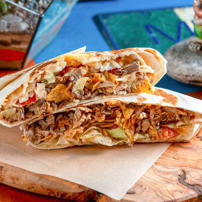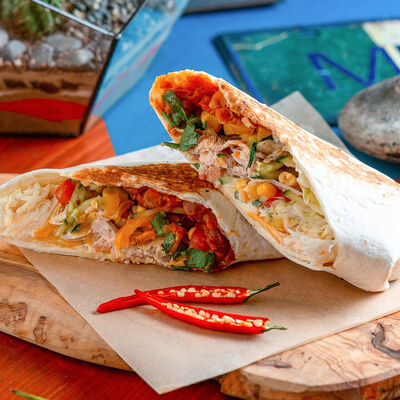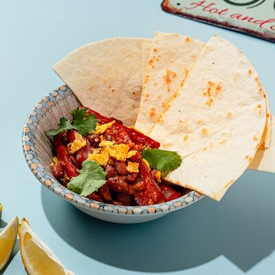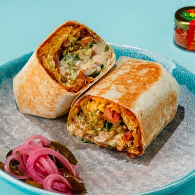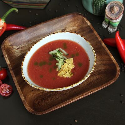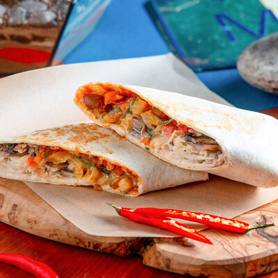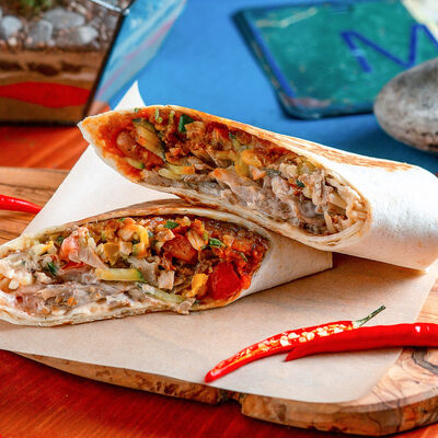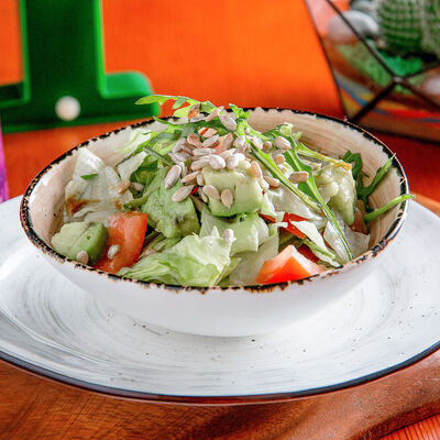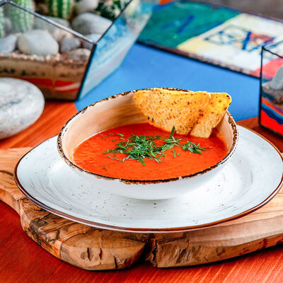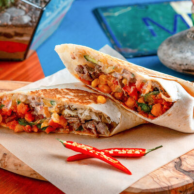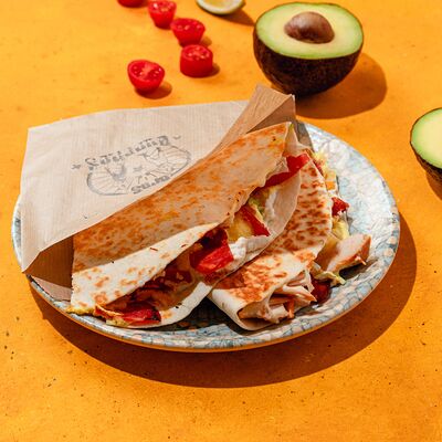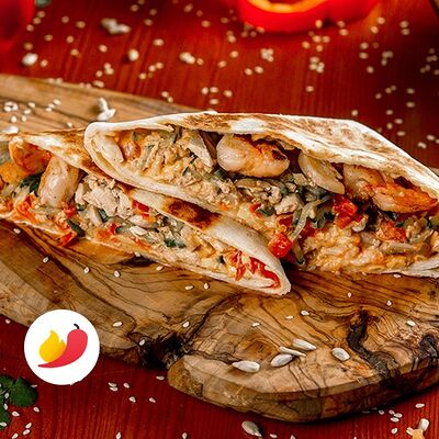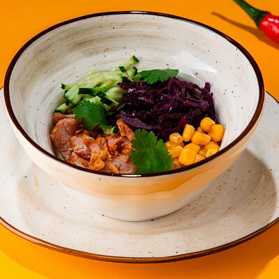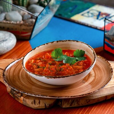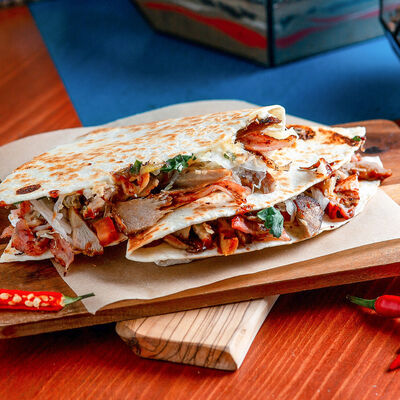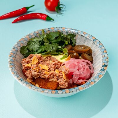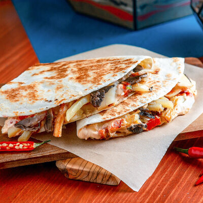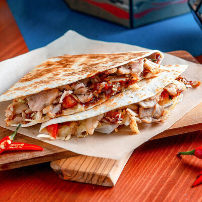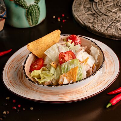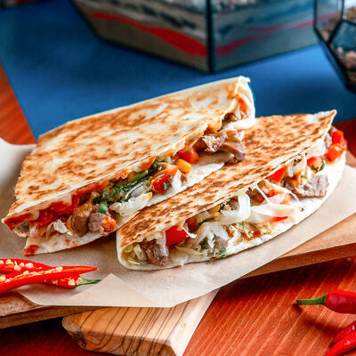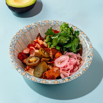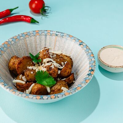 Картофель, бекон, колбаски чоризо, маринованный лук, халапеньо, перечный соус, кинза