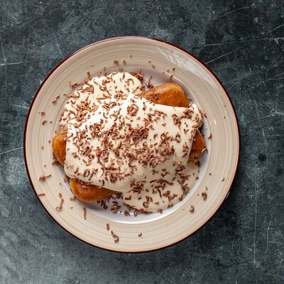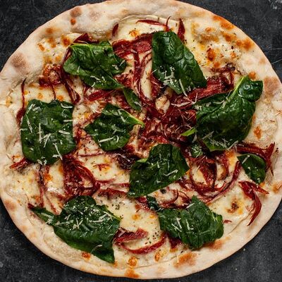 Соус бешамель, пастрами, листья шпината, твёрдый сыр (24 см)