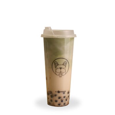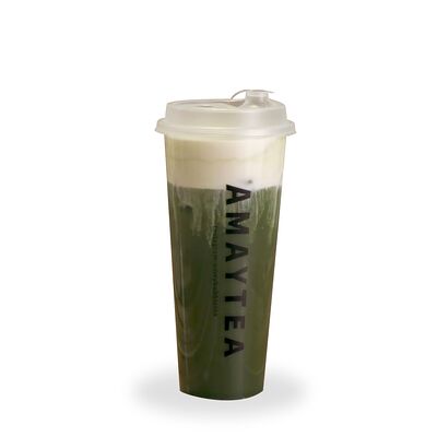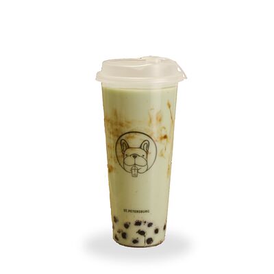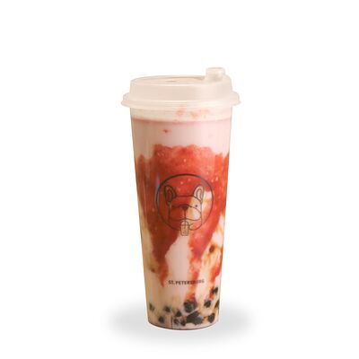 Зелёный чай, молоко, сливки, сгущёнка, тапиока, моти, клубника. Холодный напиток