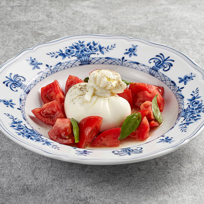 Сладкие томаты, буррата, базилик, оливковое масло, перец черный молотый
