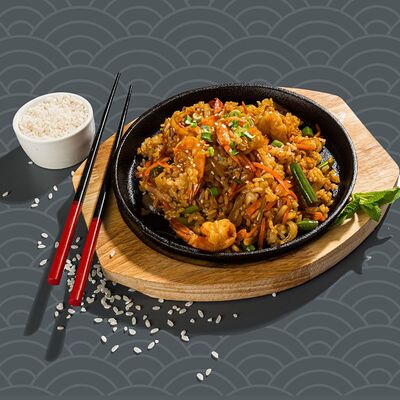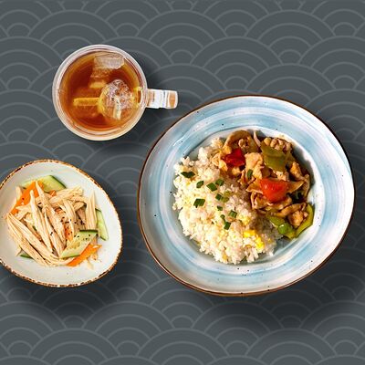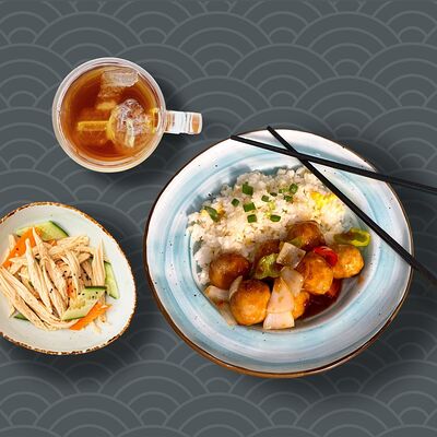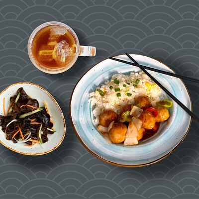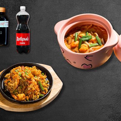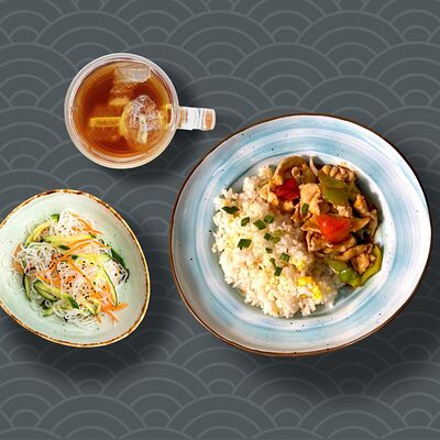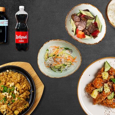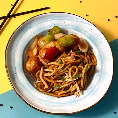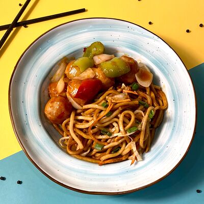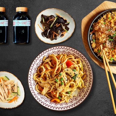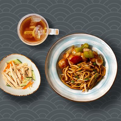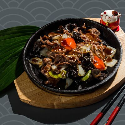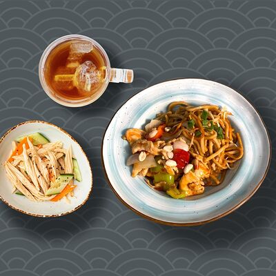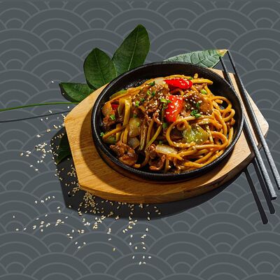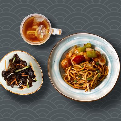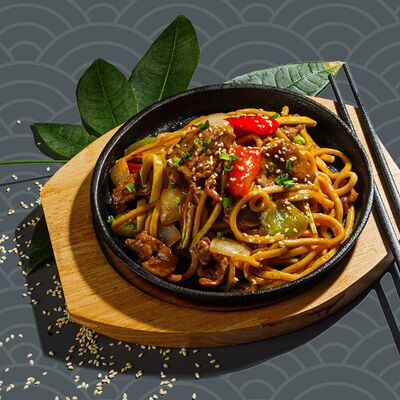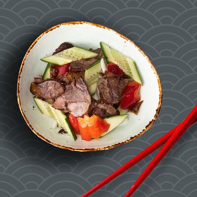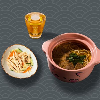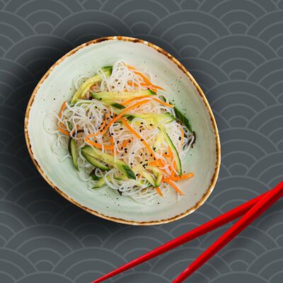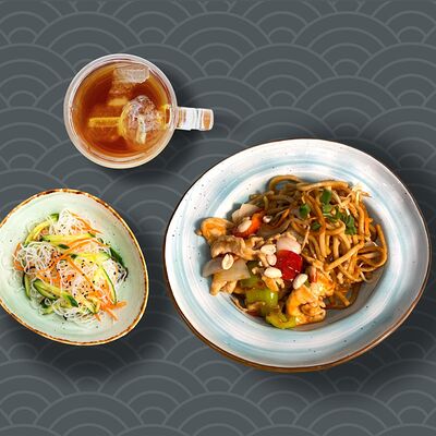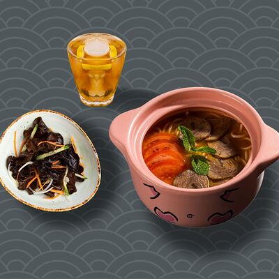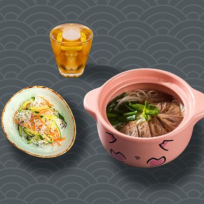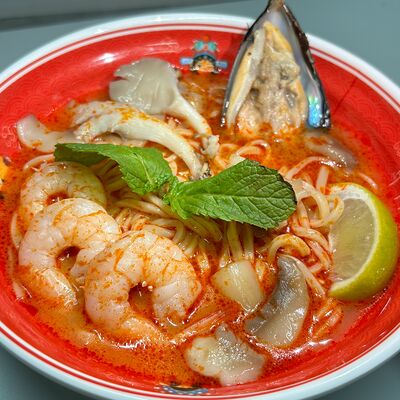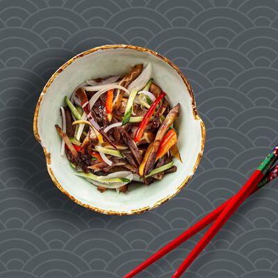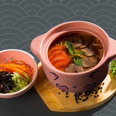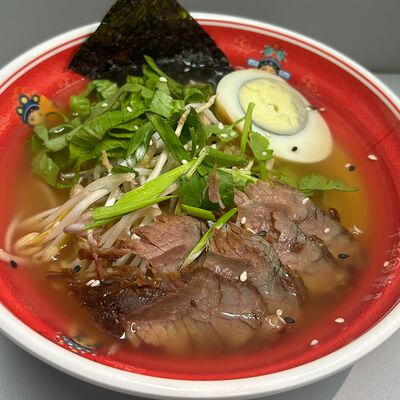 Говяжий бульон, рисовая лапша, говядина, морковь, древесные грибы, салат айсберг