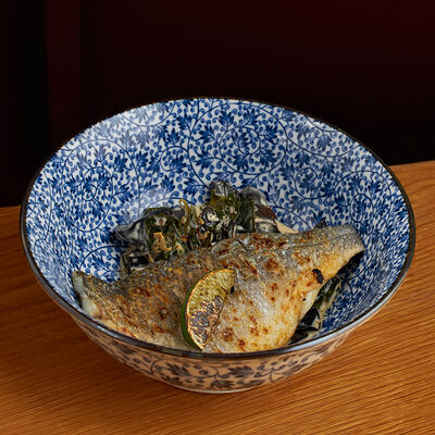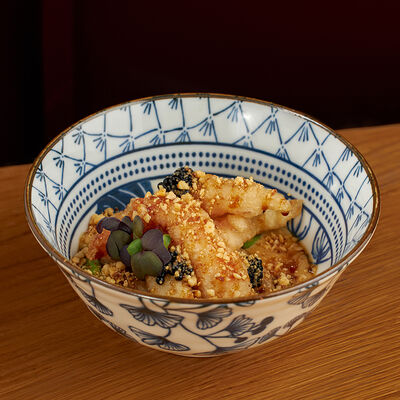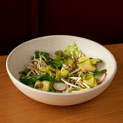 Морепродукты на ваш выбор с водорослями вакамэ, кунжутным маслом и лаймовым соком. Подается с зеленым луком