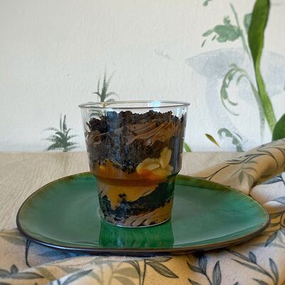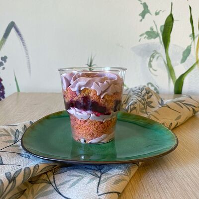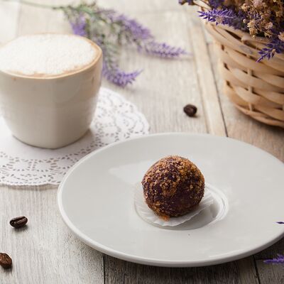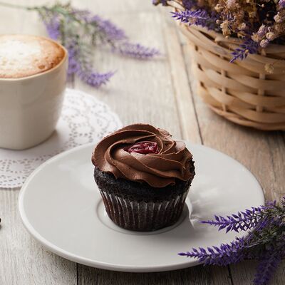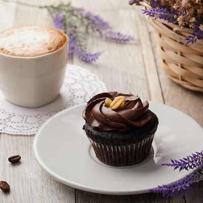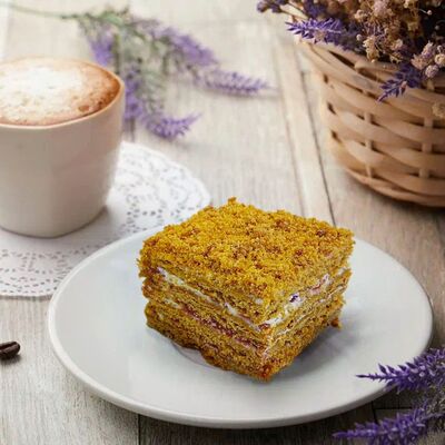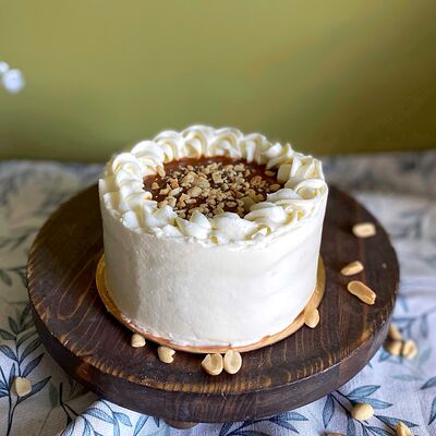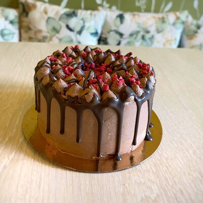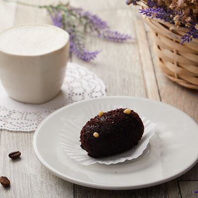 Насыщенный шоколадный бисквит, приготовленный без яиц, на молоке и какао с шоколадно-сливочным кремом, украшенный кедровыми орешками