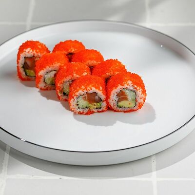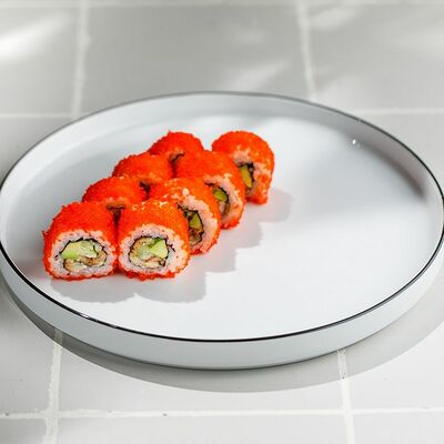 Креветка, рис, заправка для риса (уксус рисовый, соль, сахар, аджиномото), соус спайси (майонез японский, паста острая табаджан, кимчи, табаско), водоросли нори, соус соевый (вода, соевый соус, сахар, морковь, дайкон, лук-порей, лук репчатый), имбирь маринованный, васаби (васаби сухой, вода)