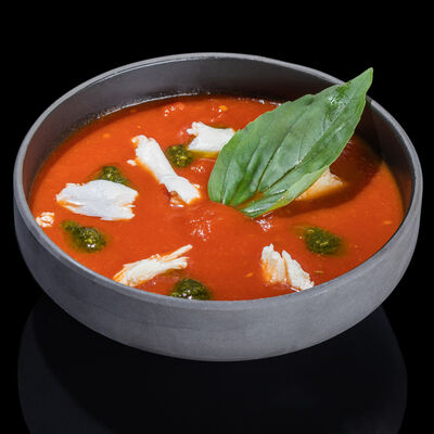 Суп-пюре Томатный с соусом Песто и сыром Моцарелла доставка