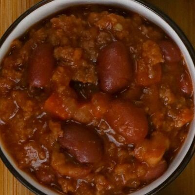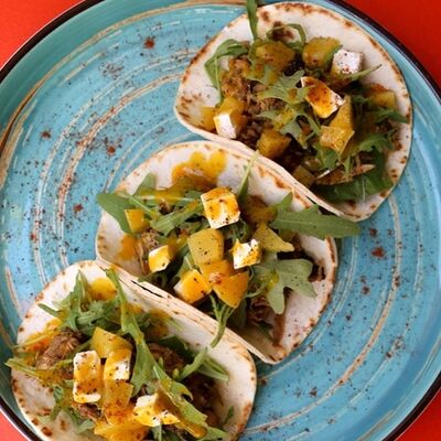 Пшеничная лепешка, говяжий фарш, чили, лук, морковь, томаты, фасоль