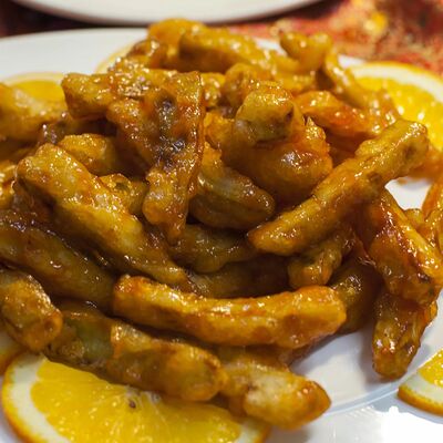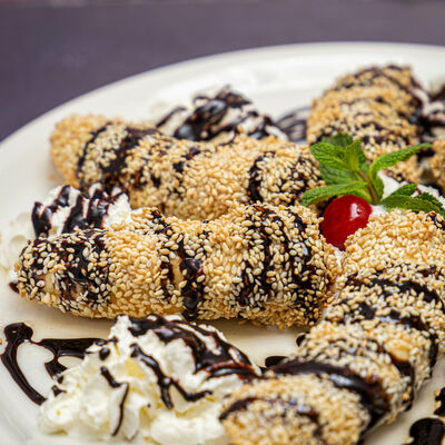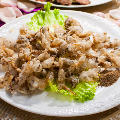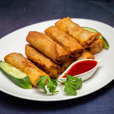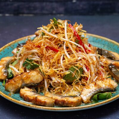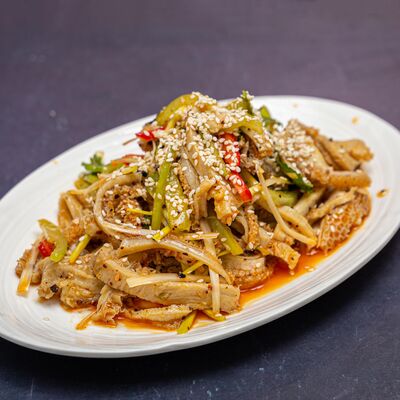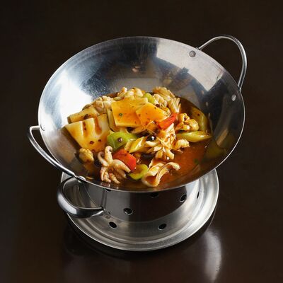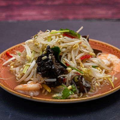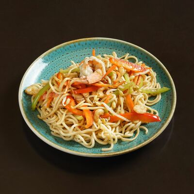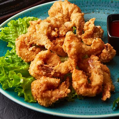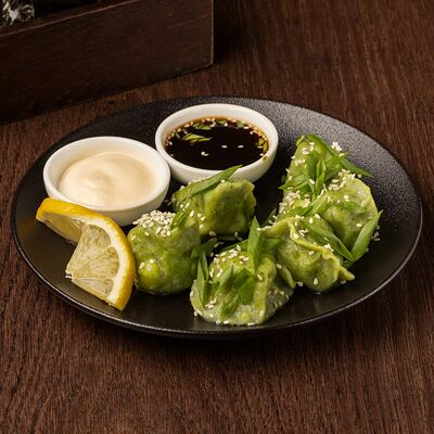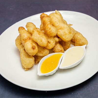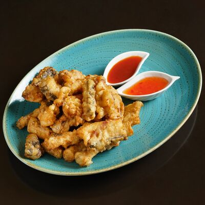 Тесто, креветки, крабовые палочки, яйцо, судак, сельдерей, имбирь, устричный соус, соус для морепродуктов, крабовый соевый соус