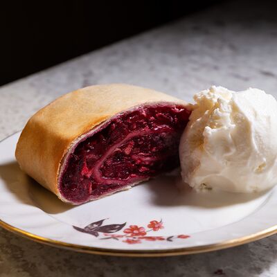 Мука, яблоко, вишня, сахар, яйцо, корица, сливочное масло