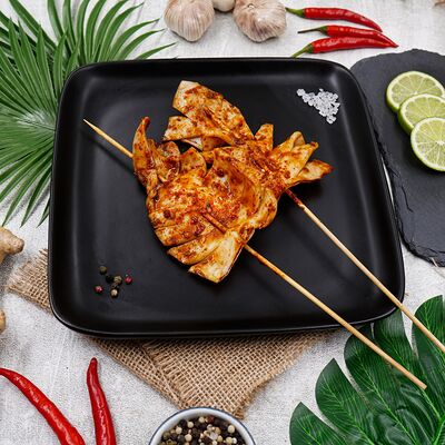 Смазываем сладким острым соусом и посыпаем зирой и паприкой