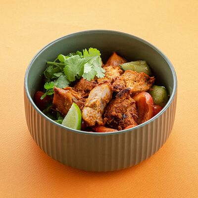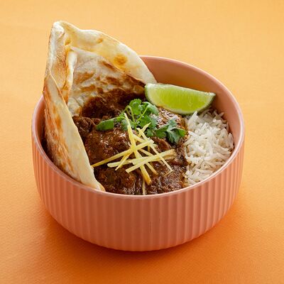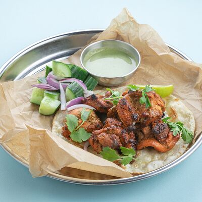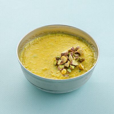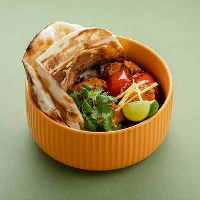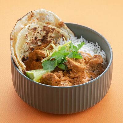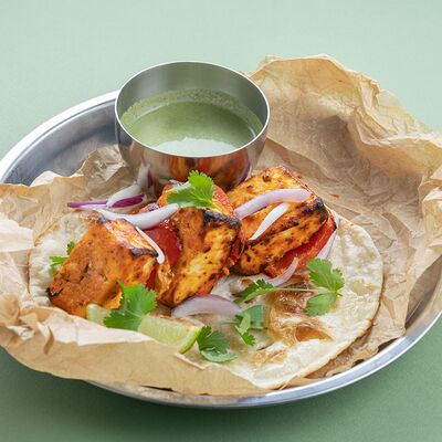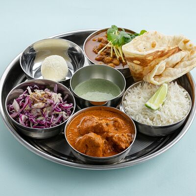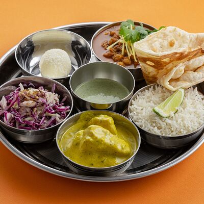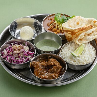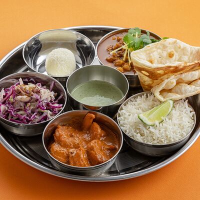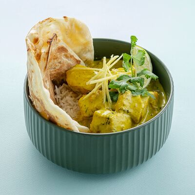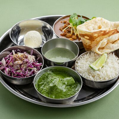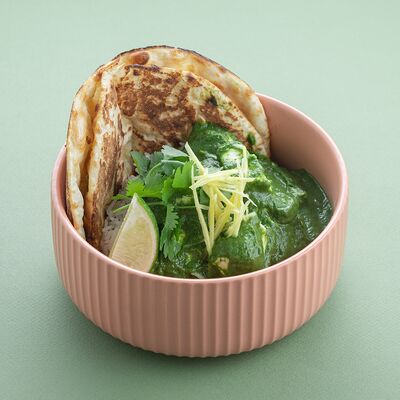 Традиционное вегетарианское блюдо: palak - шпинат, paneer - свежий сыр. Подаётся с лепешкой наан и рисом басмати