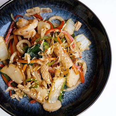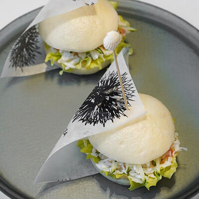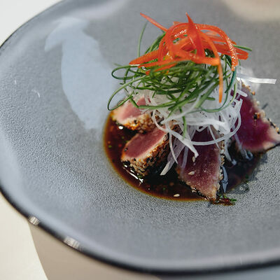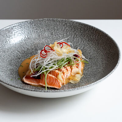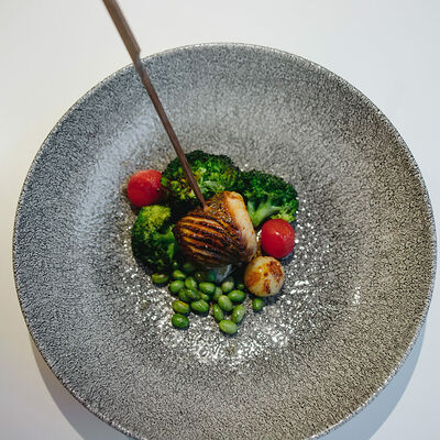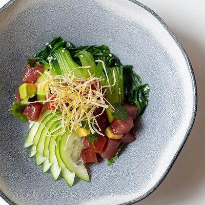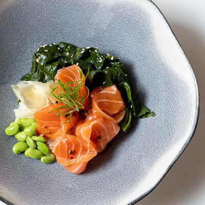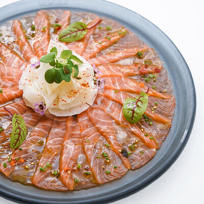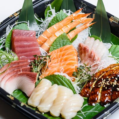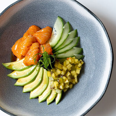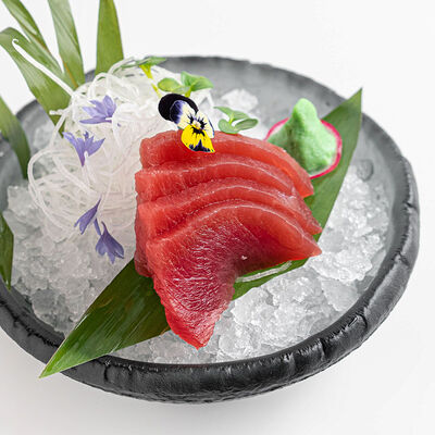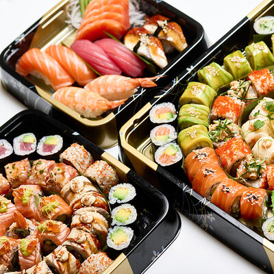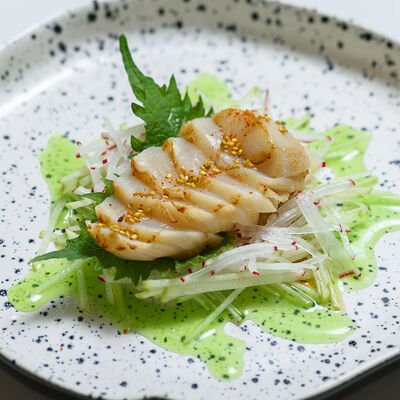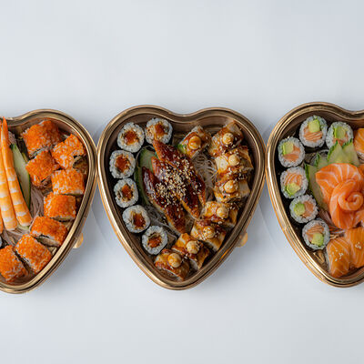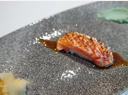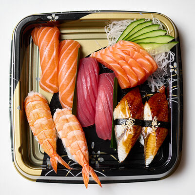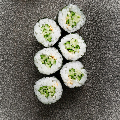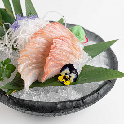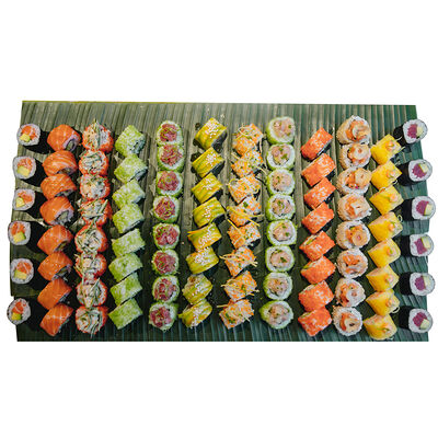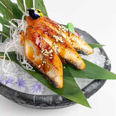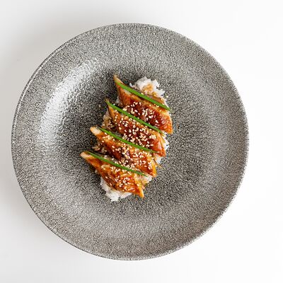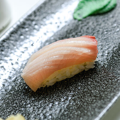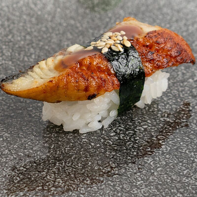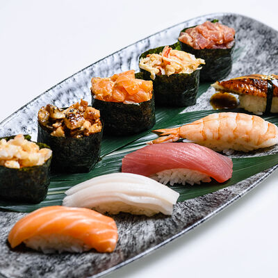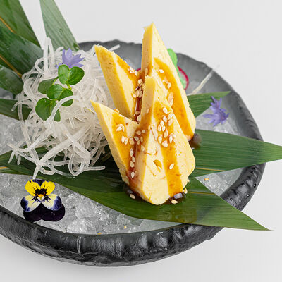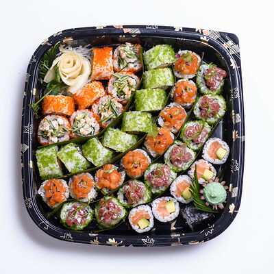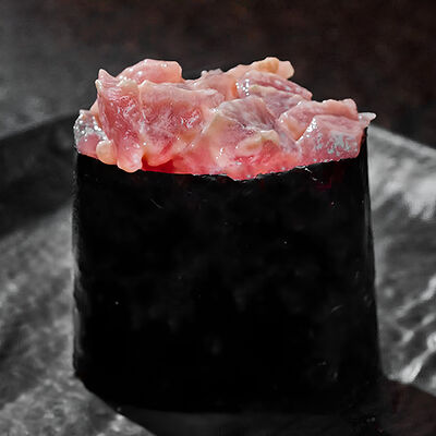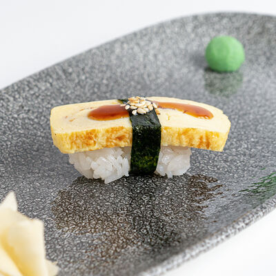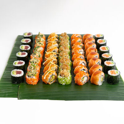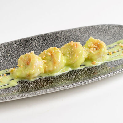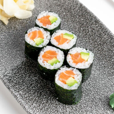 Морской окунь, рис, нори, темпура, манго, соус халапеньо, тобико, зеленый лук (8 шт.)