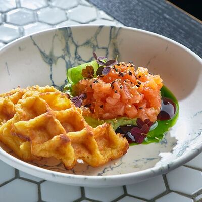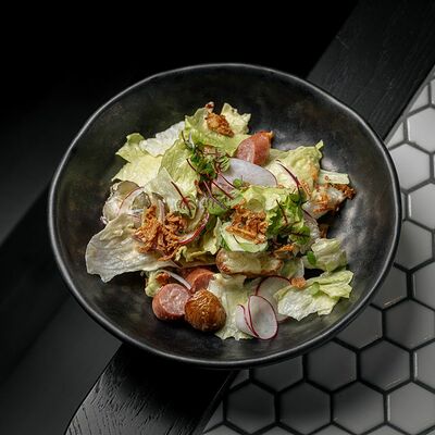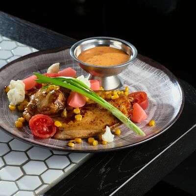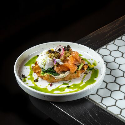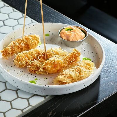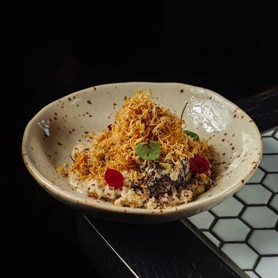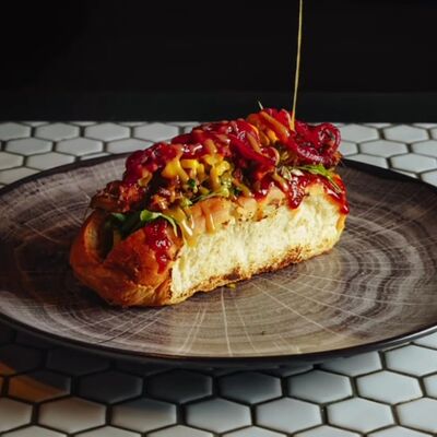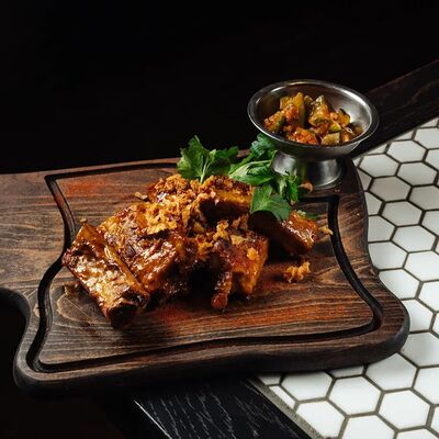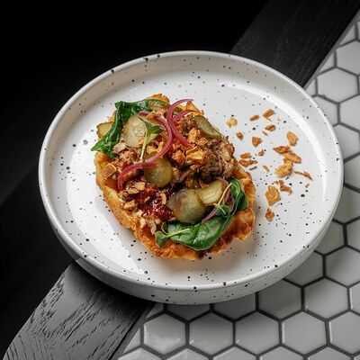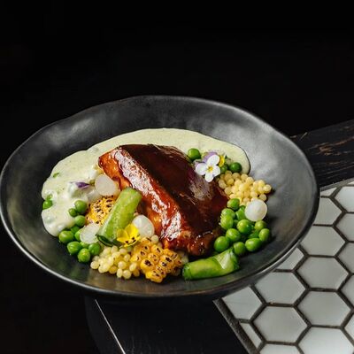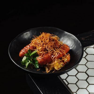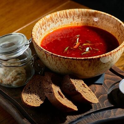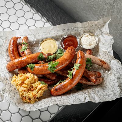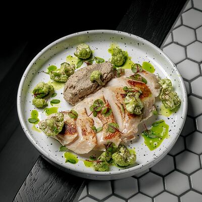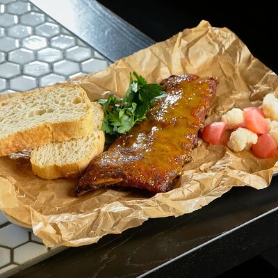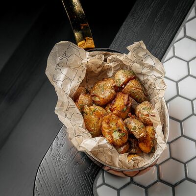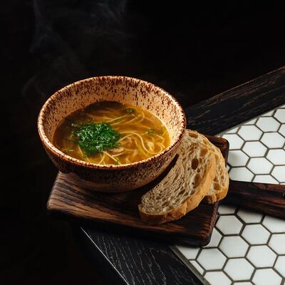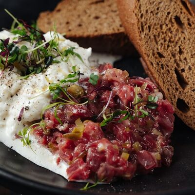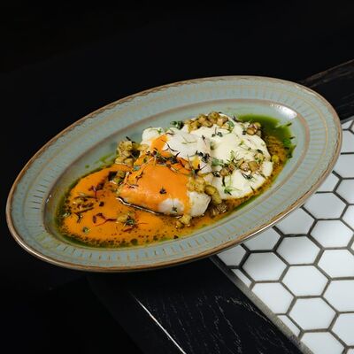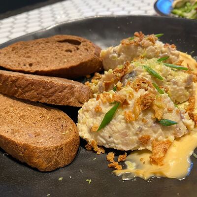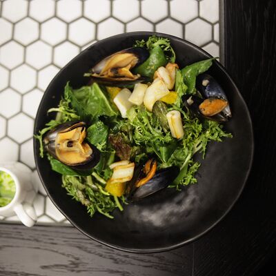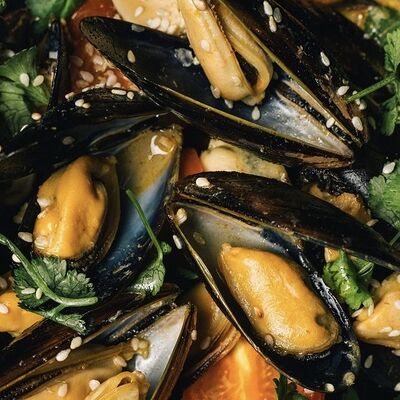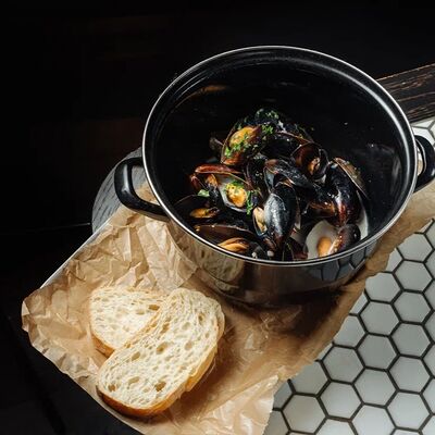 Мидии, приготовленные с добавлением белого вина, чесночной пасты и сливок. Подаются с двумя кусочками чиабатты