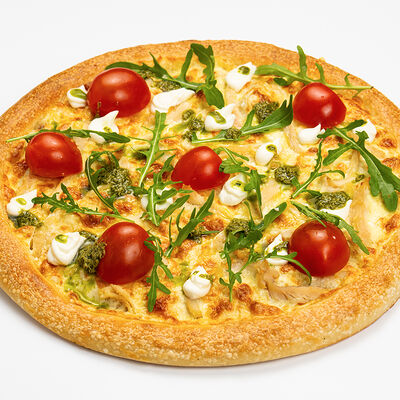 Классическое тонкое тесто, Цветная капуста, Вешенки, Шампиньоны, Кешью, соевый тофу, Веганский пармезан