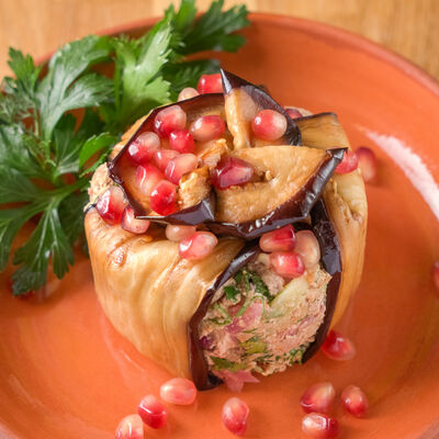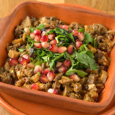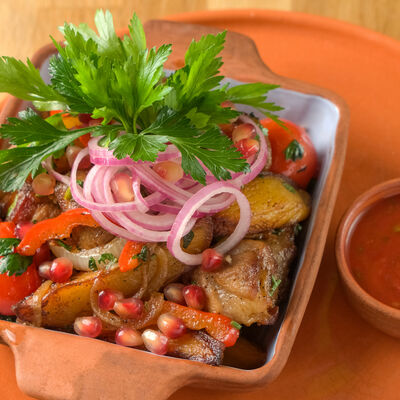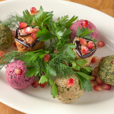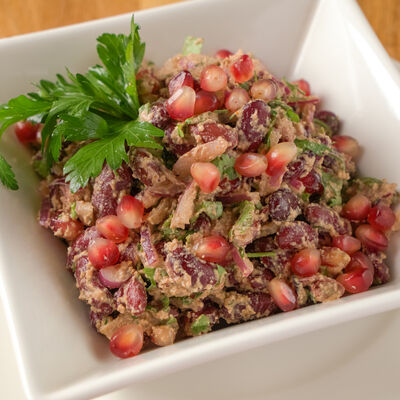 Красная фасоль, грецкие орехи, кинза, гранат