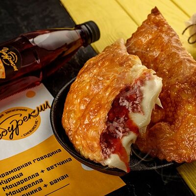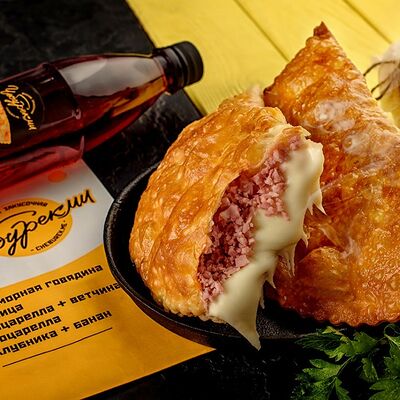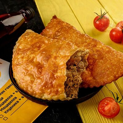 Хрустящее тесто, фарш из мраморной говядины, сметана, зелень (23 см)