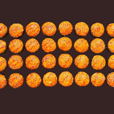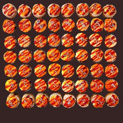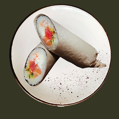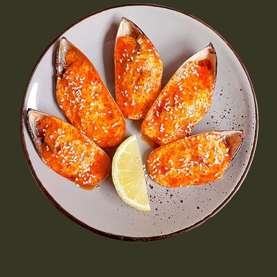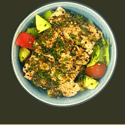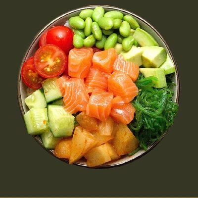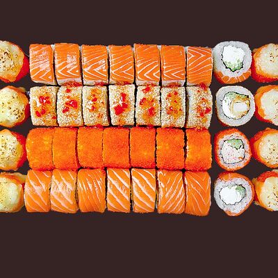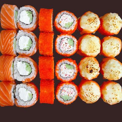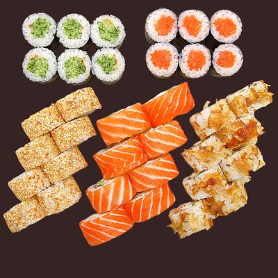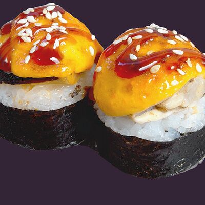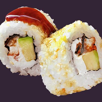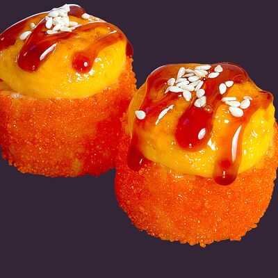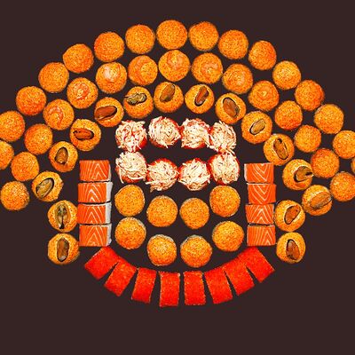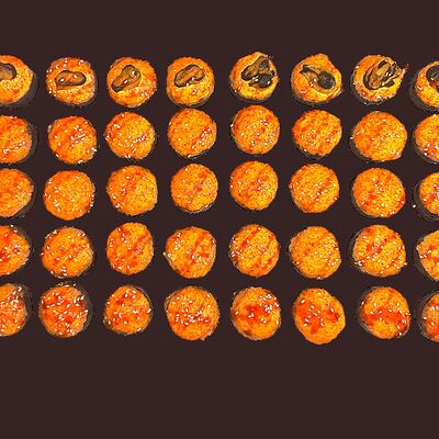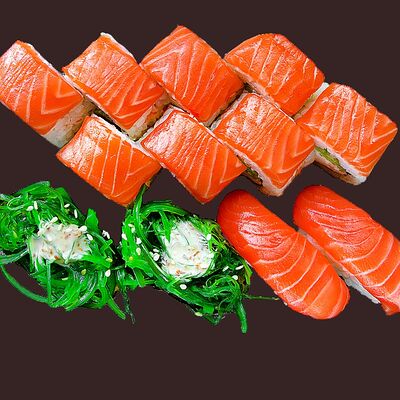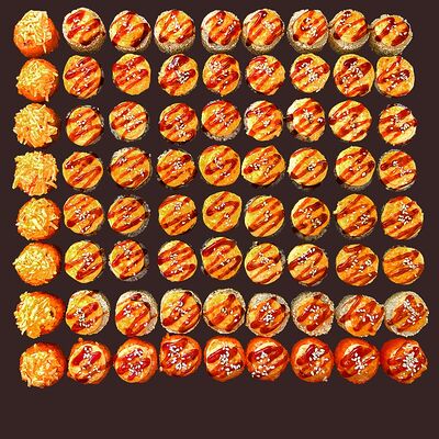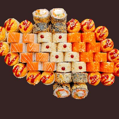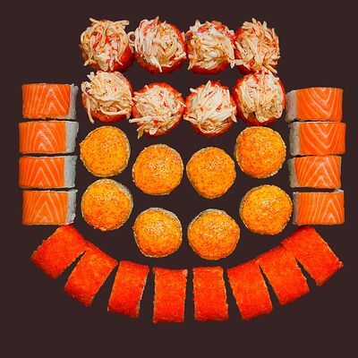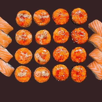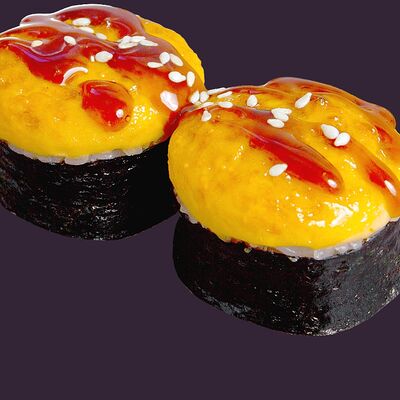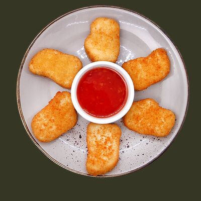 Рис, соевый сыр тофу, перец болгарский (жёлтый, красный), грибы вешенки, фасоль, морковь, лук, имбирь, чеснок, кунжут, соус кисло-сладкий, фирменный соус терияки