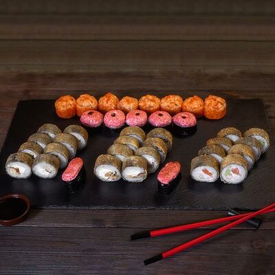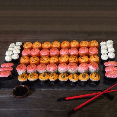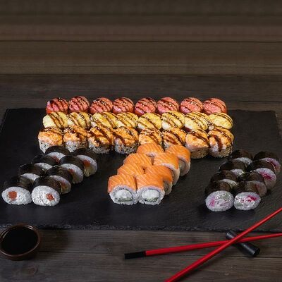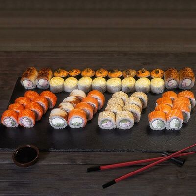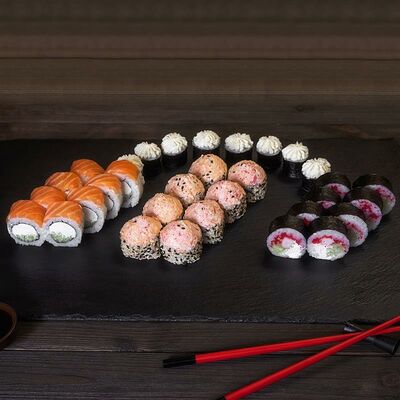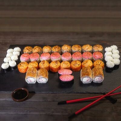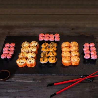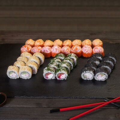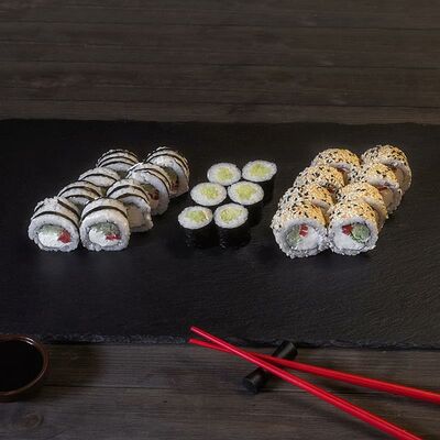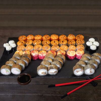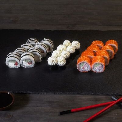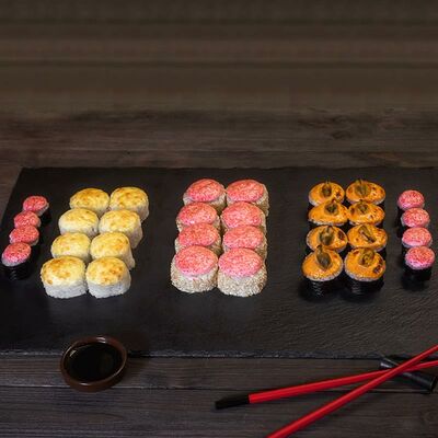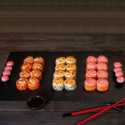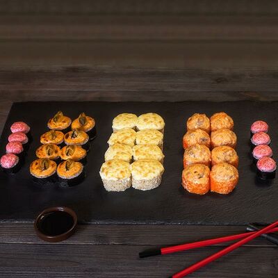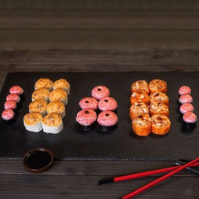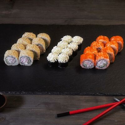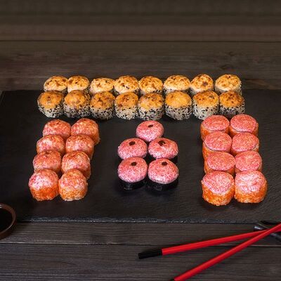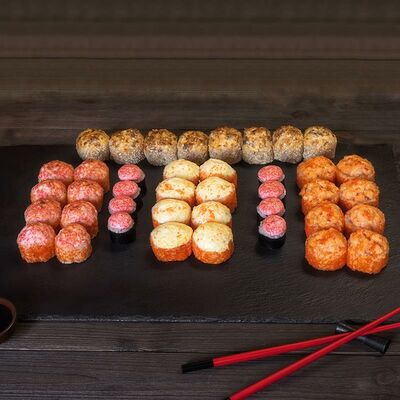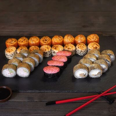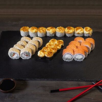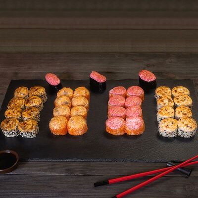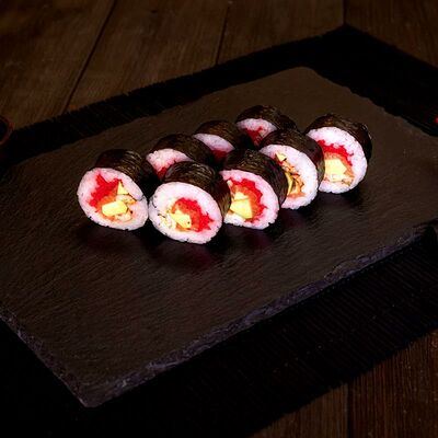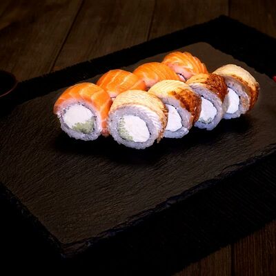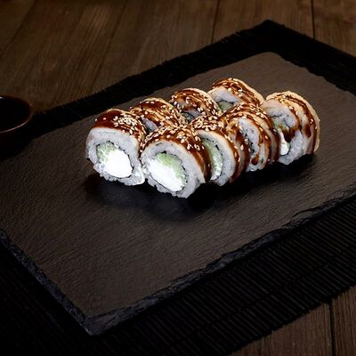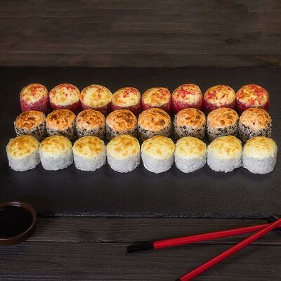 Угорь со сливочным сыром в темпуре, филадельфия в темпуре, креветка-краб в темпуре, спайси чикен, ролл самурай, ролл якудза, ролл особенный, тамаго со сливочным сыром мини ролл